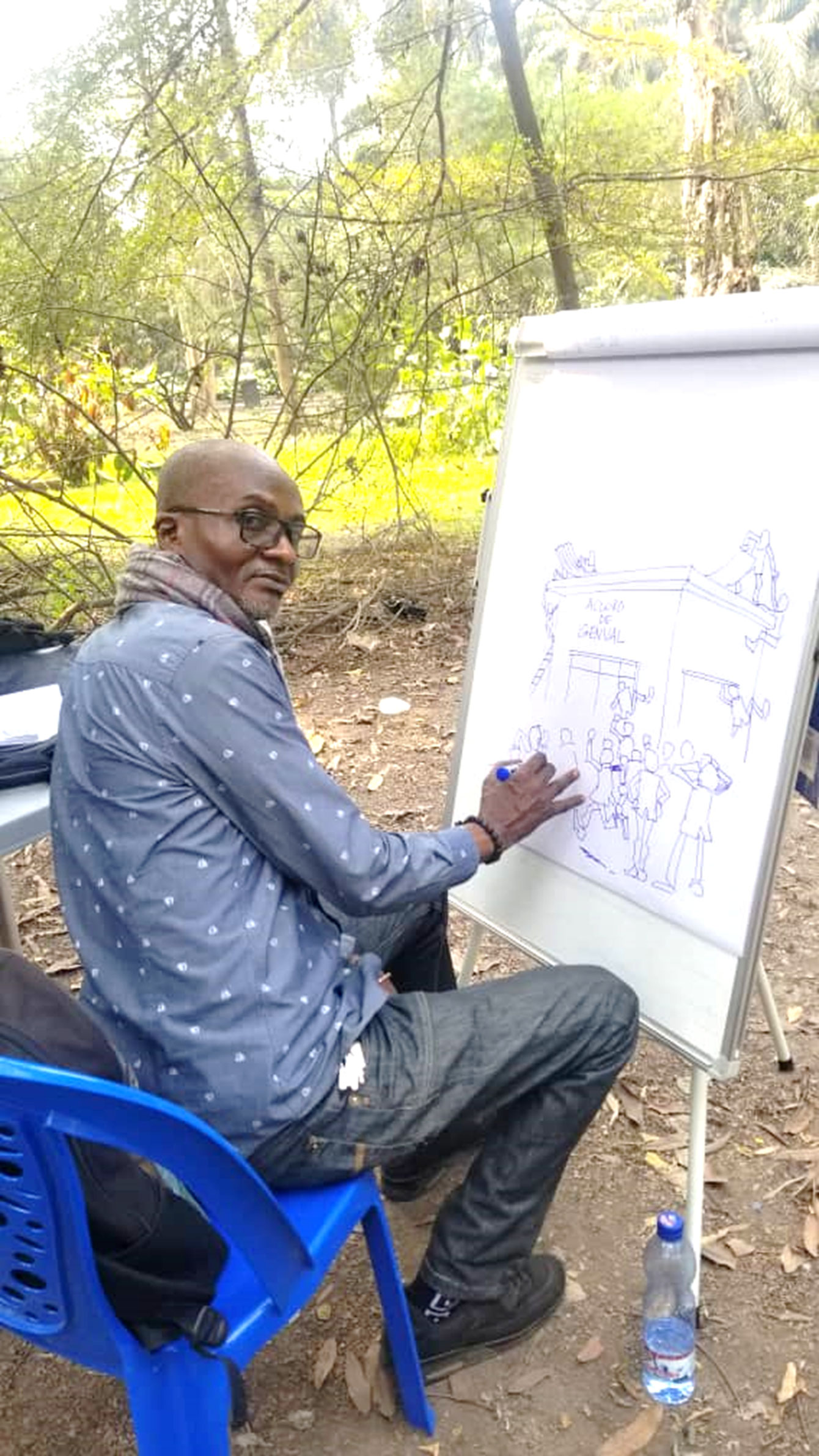 Pour la 2ème édition, il passe le relais à Philma qui supervise la tenue de la 2ème éxposition des ccaricaturistes en cours. Humble et moins bavard, cet artiste polyvalent (il est à la fois dessinateur, sérigraphe, percussionniste…) recourt au net pour coordonner le projet, tâchant d’éveiller ceux qui traînent les pieds. Au regard du chronogramme pressant, Patou Bomenga ménage son temps entre Caricakin, son travail au quotidien « Forum des as » et son foyer.