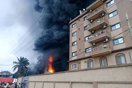 Une épaisse colonne de fumée s’exhale depuis hier de la concession de Congo futur, à la 12ème rue du quartier industriel de Limete. Signalé aux environs de 10h00, l’incendie s’est propagé au-delà des entrepôts de la société Plastico Do Sol, une entreprise spécialisée dans la fabrication des plastiques. Aperçue depuis dans les quatre coins de la ville de Kinshasa, la colonne de fumée a provoqué des frayeurs. Les flammes étaient si vives qu’elles ont embrasé des résidences privées environnantes, sans toutefois causer mort d’hommes, assurent des témoins. Jusqu’à minuit, heure où nous avons quitté le lieu du drame, le feu n’était pas encore éteint. Récit.