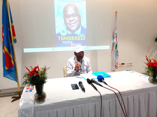 « Pour l’instant, nous pensons que dans la situation actuelle, le président de la République est celui qui est mieux placé, parmi tous les candidats qui se sont prononcés, pour diriger ce pays « , a dit Léonard She Okitundu. Didier KEBONGO