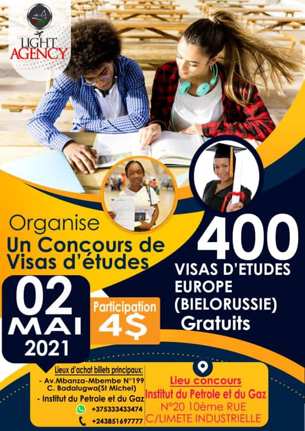 RDC : « Light Agency » organise un concours le 02 mai pour octroyer 400 visas d’études gratuits pour la Biélorussie