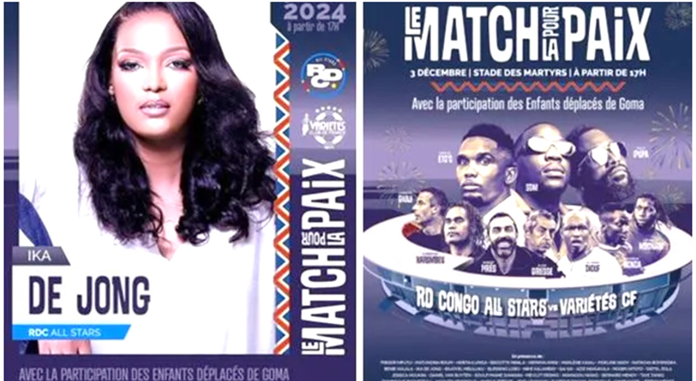 «Un rendez-vous exceptionnel vous attend ce 3 décembre à 17h au stade des Martyrs : le Match pour la Paix, un événement de solidarité au profit des victimes de l’Est de la RDC», a-t-on lu. Ce match de gala mettra en lumière des figures emblématiques du football international et des talents congolais, réunis pour une cause noble : promouvoir la paix et la solidarité à travers le sport. Cette rencontre connaitra la participation des anciens joueurs des Léopards qui ont évolué au pays et en Europe, tels que : Trésor Mputu, Matumona Zola Roum, Roger Hitoto, Distel Zola. En dehors de ces anciens footballeurs, il y aura également des comédiens, des musiciens Congolais et étrangers qui prendront part à cet événement, en l’occurrence: Fally Ipupa, Gaz Mawete, Blessing Lobo, Mike Kalambay, Sai-Sai, Jessica Houara, Bénie Musabu (SDN).