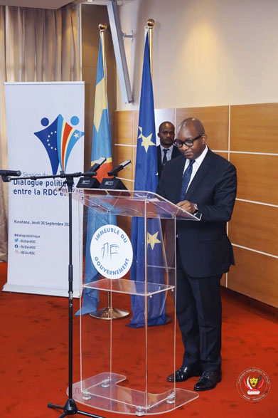 Le Premier Ministre, Jean-Michel Sama Lukonde Kyenge, a procédé, hier jeudi 30 septembre à l’hôtel du Gouvernement, à l’ouverture des travaux de la 3ème session du Dialogue politique entre la République démocratique du Congo et les pays membres de l’Union européenne. La cérémonie s’est déroulée en présence du Président du Sénat, du Représentant de l’Union européenne, des membres du gouvernement, des ambassadeurs et chefs des missions diplomatiques des pays membres de l’Union européenne ainsi que de plusieurs experts.