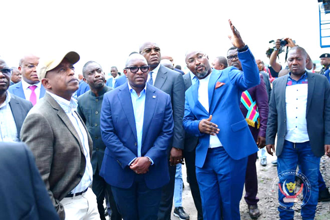 Le porte-étendard des « warriors » s’est ainsi rendu sur ce chantier, accompagné de quelques membres du Gouvernement. Outre le ministre d’État en charge des Infrastructures, Travaux Publics et Reconstruction (ITPR), M. Alexis Gisaro Muvunyi, le Premier ministre Sama Lukonde a visité le podium en construction aux côtés des ministres Patrick Muyaya (Communication et Médias), Modero Nsimba (Tourisme) et Chérubin Okende (Transports, Voies de Communication et Désenclavement).