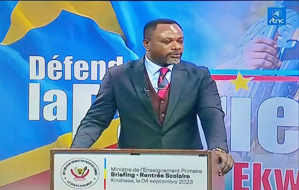 Le ministre de l’Enseignement primaire, secondaire et technique, Tony Mwaba Kazadi et le ministre de la Communication et Médias, porte-parole du Gouvernement, Patrick Muyaya Katembwe, ont co-animé hier lundi 4 septembre 2023, un briefing presse axé sur la rentrée scolaire 2023-2024.