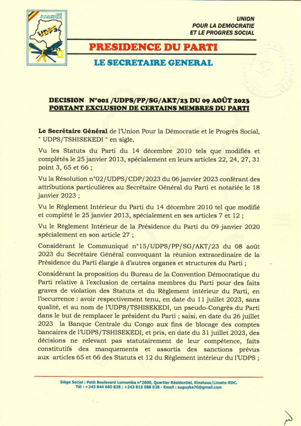 UDPS : Les initiateurs du « Congrès » du 11 juillet exclus