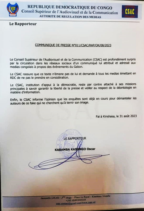 Un texte sur le Gabon a été faussement attribué au CSAC