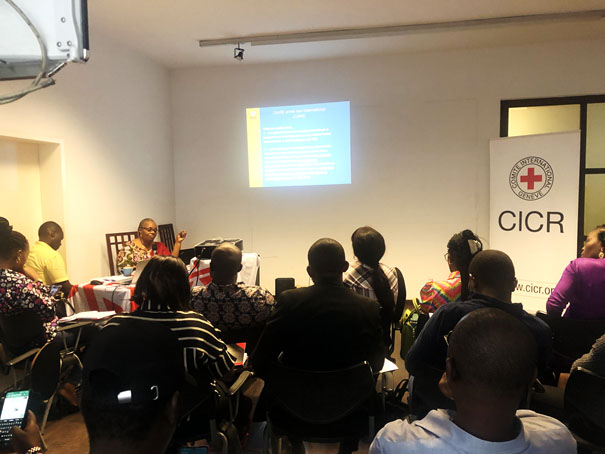 La Conseillère juridique régionale du CICR, Claudine Mushobekwa a introduit les participants aux notions du Droit international Humanitaire. « Le DIH vise à préserver une certaine humanité au cœur des conflits. Il est un des outils les plus puissants dont dispose la communauté internationale pour que la sécurité et la dignité des personnes soient respectées lors de conflits armés. C’est un ensemble de règles qui visent à limiter les effets des conflits armés. Il permet de restreindre le choix des parties au conflit quant aux méthodes et moyens de guerre et de protéger les personnes qui ne participent pas ou ne participent pas plus aux hostilités » a expliqué l’intervenante.