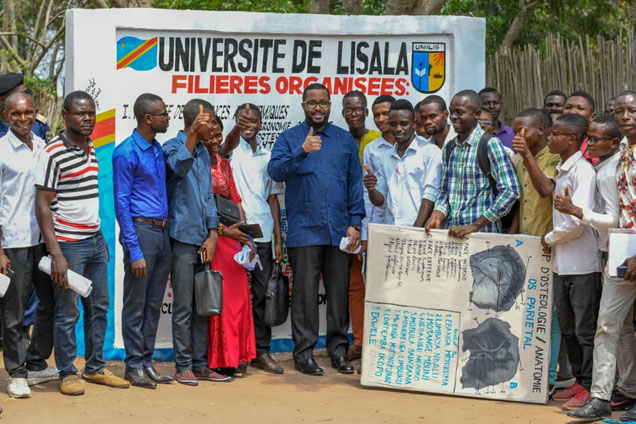 Créée en avril 2006 comme Centre Universitaire de Lisala sur initiative du diocèse, extension de l’Université de Kinshasa, l’Université de Lisala obtint son autonomie en 2010 qui la classe dans la catégorie des établissements publics reconnus par le Ministère de l’Enseignement Supérieur et Universitaire. « Avec 682 étudiants en cette année académique répartis en six facultés, l’Université progresse du point des ressources humaines avec 14 professeurs, 51 chefs de travaux et assistants mais est butée à des problèmes financiers récurrents dont les faibles entrées difficilement perçues des étudiants et l’arrêt depuis 2015 des subventions étatiques » indique le recteur Abbé Donat Tebakabe lors de cette visite en présence d’une centaine d’étudiants. » Les dons, legs ou libéralités certes rares sont les bienvenues pour assurer la viabilité de notre établissement » a-t-il révélé.