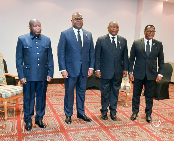 Outre le Chef de l’État Félix Tshisekedi, ses homologues Lazarus Chakwera du Malawi, Cyril Ramaphosa d’Afrique du Sud et Ndayishimiye du Burundi ont pris part à cette rencontre, ainsi que des officiels congolais, membres du gouvernement, du cabinet du Président et de l’Armée.